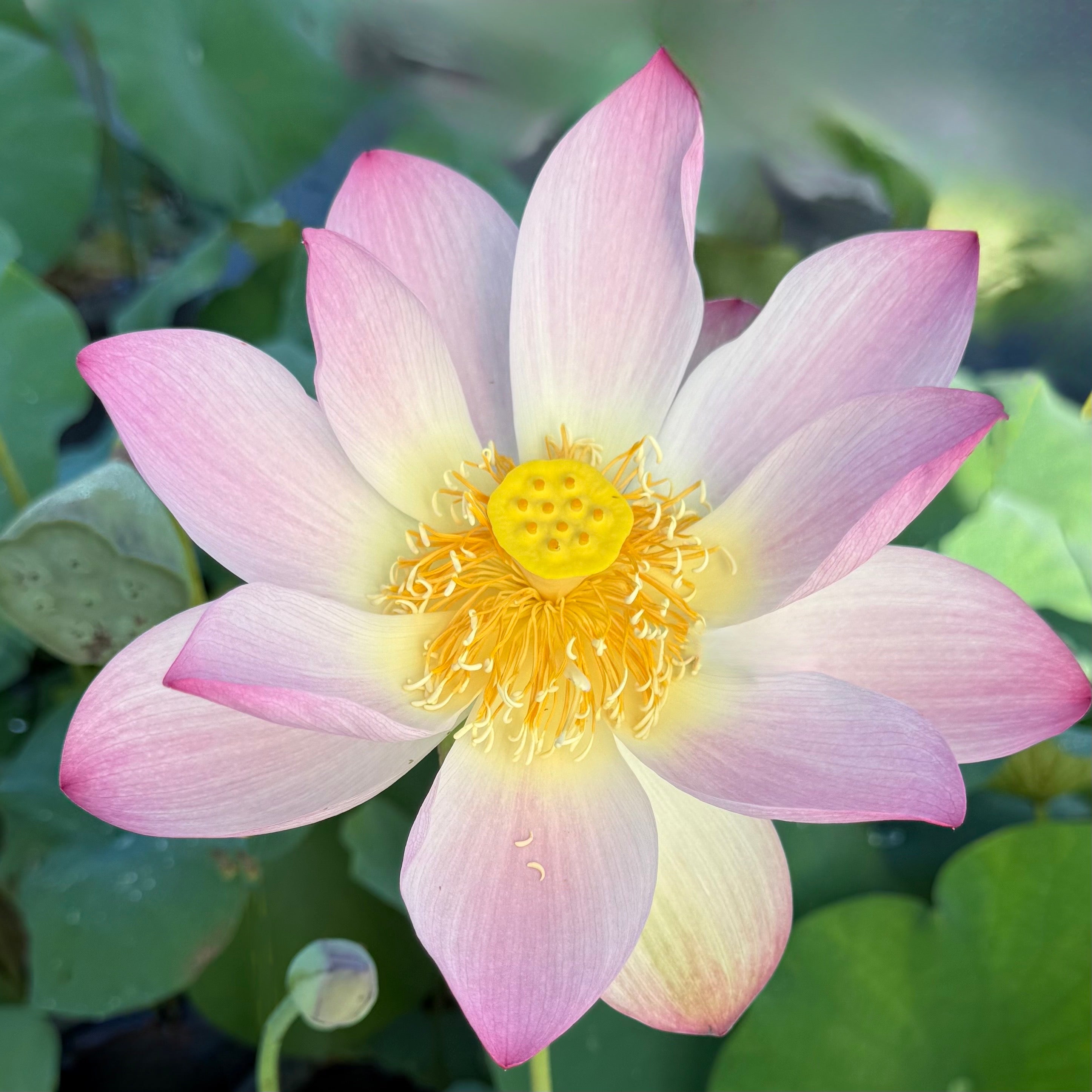 Large lotus varieties need large pots! This is a large lotus variety that needs a pot at least 20” or wider and 12” or more in depth. Be sure to fill the pot at least half full of soil to help offer support and stability for the leaves. Deeper soil allows them to withstand strong winds and keeps the heavy flowers and buds from falling.